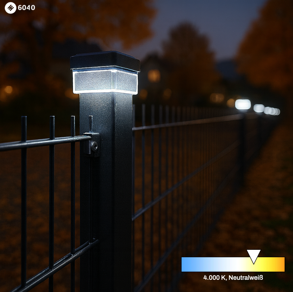Solarleuchte für 60x60 Eckpfosten & Tore – Ideal für Doppelstabmattenzäune